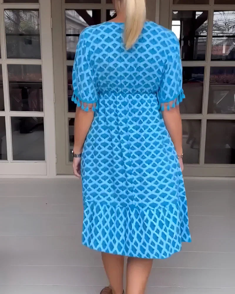 Beautiful and elegant design – The V-neck and spacious silhouette highlight your figure and give the dress refinement.