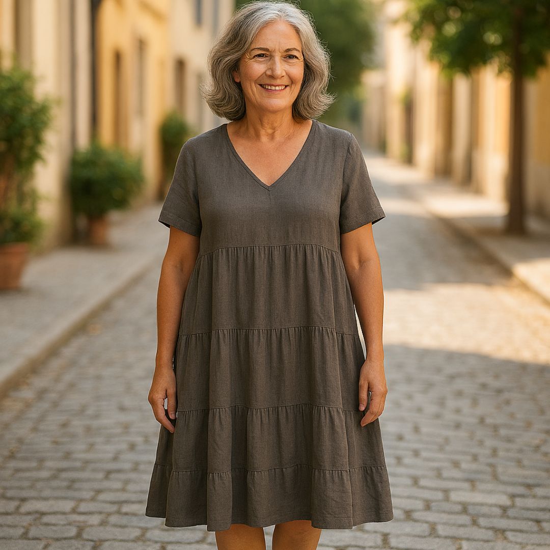 Are you looking for a dress that gives you confidence and elegance all day long? The model Flóra offers a great silhouette and versatile design suitable for any occasion. Thanks to the breathable material and tasteful V-neck, it’s the perfect choice for any woman who desires simplicity and refinement.