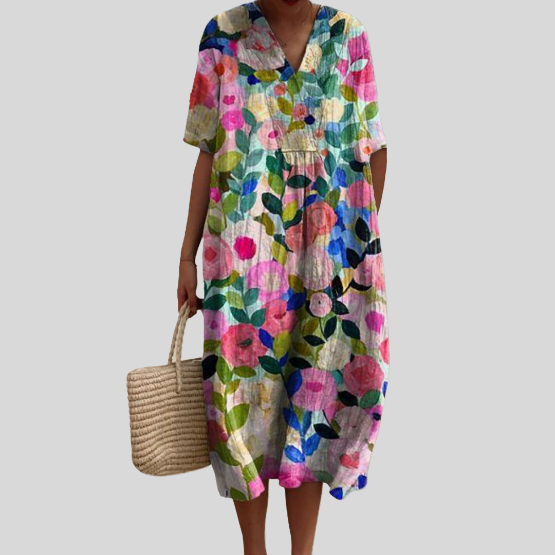 Are you looking for a dress that exudes elegance while keeping you comfortable? The model Melissa is the ideal choice due to its comfortable cut and lightweight material, allowing you to feel at ease all day long. With this dress, you'll feel beautiful and confident in any situation, from summer days to evenings out.