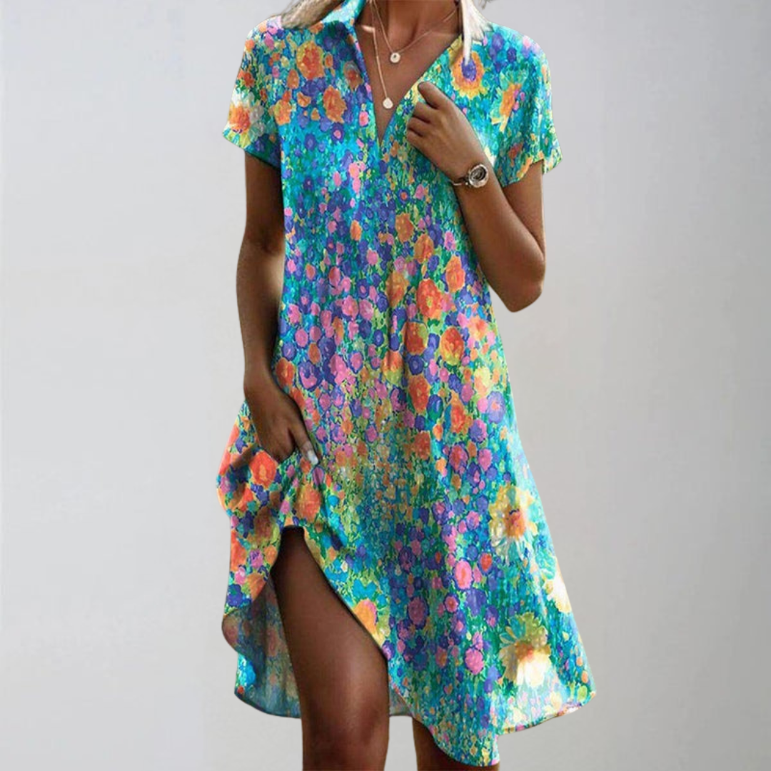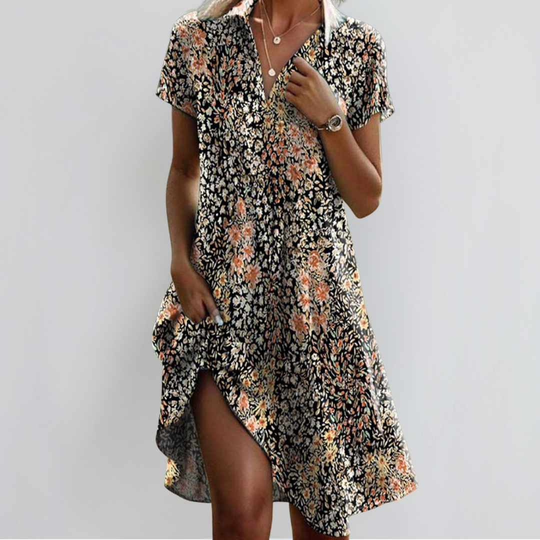 The dress Elise combines refined vintage style with the comfort of a modern silhouette. The lightweight fabric and beautiful floral pattern ensure that you feel beautiful and confident on any occasion.