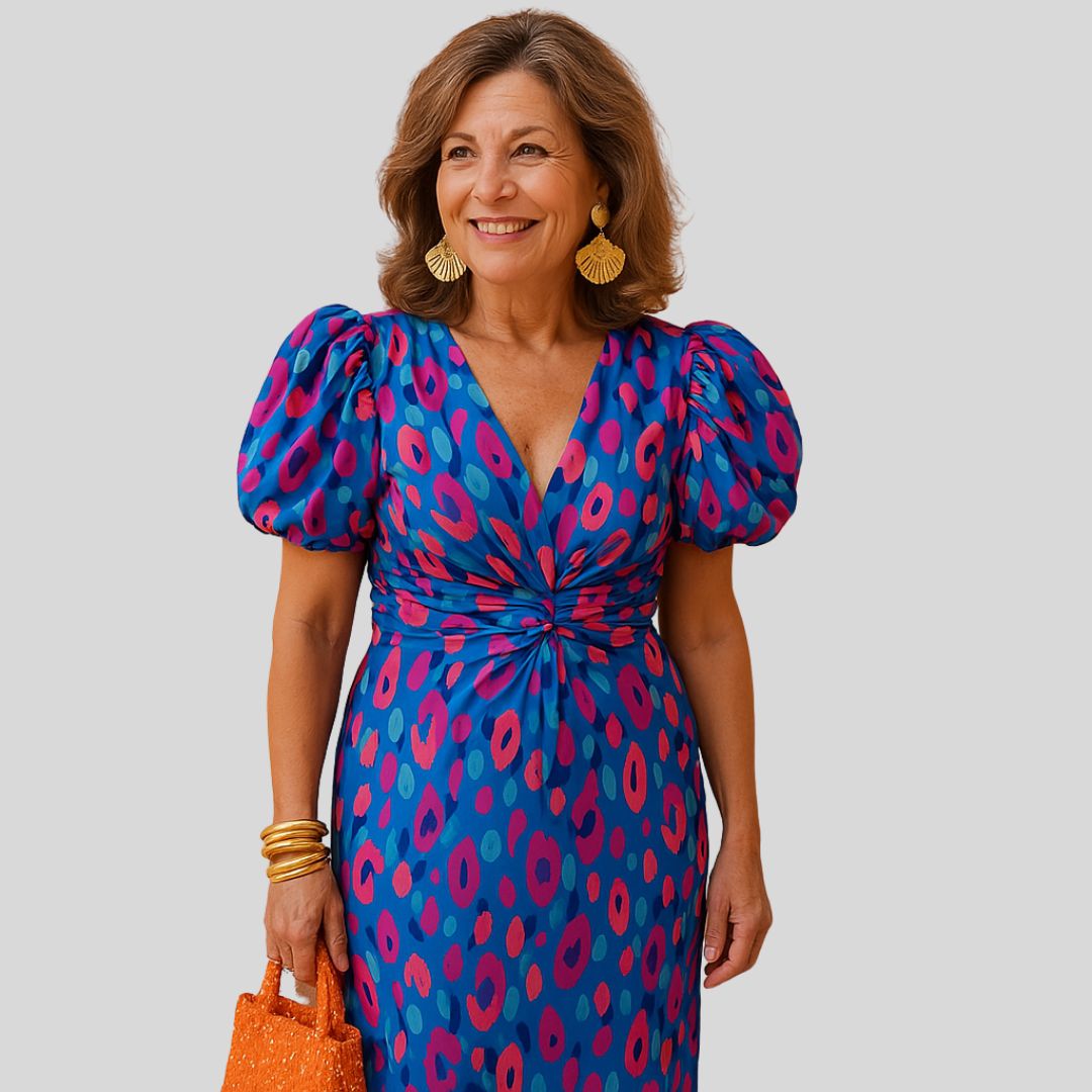 Frances | Dress with Puffed Sleeves in Bright Colors