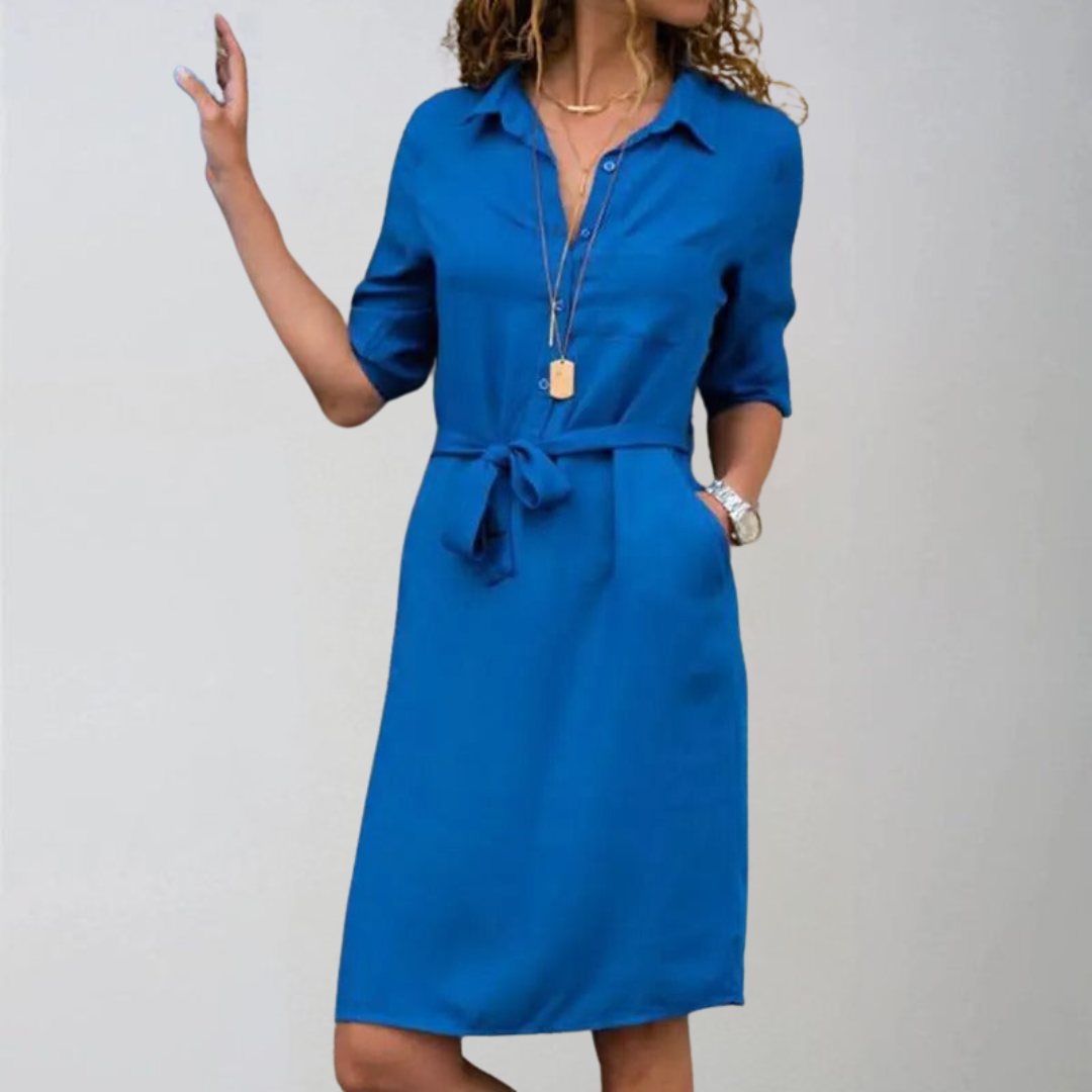 Refresh your daily wardrobe with the Karolina T-Shirt Dress, which perfectly combines comfort and style. Thanks to the high-quality breathable fabric, it will keep you comfortable all day long, while the time-tested design with a classic collar, button closure, and knee-length finish adds elegance and freedom to your look.